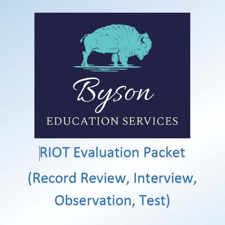 Shop the collection Categories: Select a Category Special Education Documents Digital Store Special Education Documents | RIOT Evaluation Packet (Record Review, Interview, Observation, Tests) $8.00